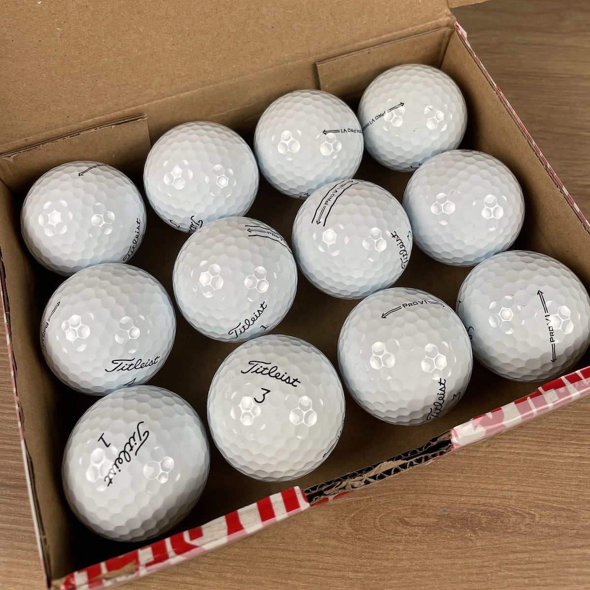 In terms of price, 12 Grade A premium Titleist PRO V1 golf balls cost only £31.99 (£28.79 using my discount code below’), which is considerably less than the £44.99 you’ll pay a local pro shop or major golf retailer for a dozen new PRO V1’s.
