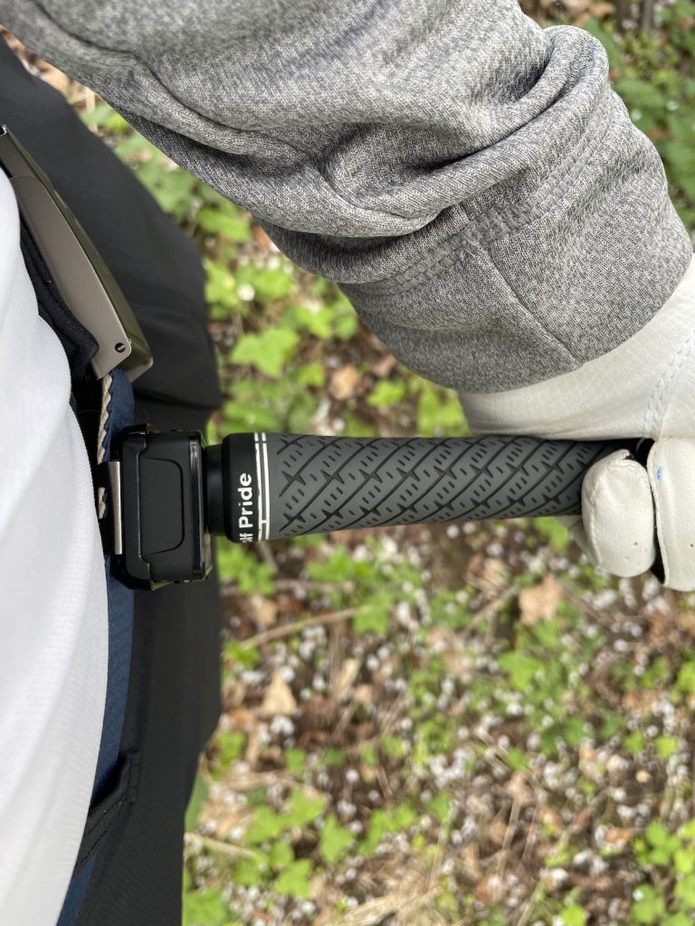 Something useful that I have learned to do over time is to put the H4 upside down into the metal belt clip so that when I remove it or tilt upwards to read the GPS distances, they are displayed the correct way up. If you don’t do this and put the H4 into the clip the correct way up, the display will actually be upside down and you’ll have to fully remove the H4 from the clip and rotate it to view distances.