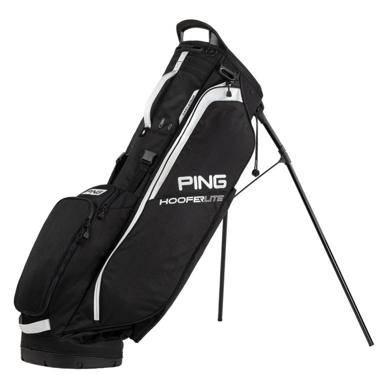 The new Ping Hoofer Lite 231 Golf Stand Carry Bag features a lightweight 2.26 kg construction, perfect for increasing your endurance during a round. It offers a 4-way top and seven pockets with 19L of volume, including a zippered range-finder pocket and an easy-access valuables pouch. Padded straps and a back puck simplify conversion to a single strap, making carrying effortless. A full-length zipper on the apparel pocket and a cart-strap pass-thru further enhance the bag’s efficiency.